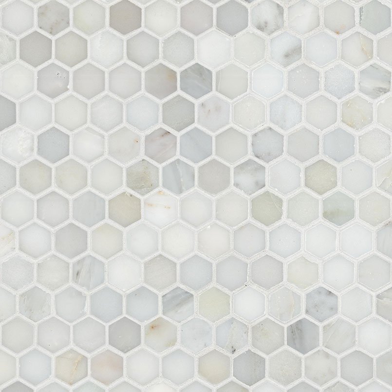 Calacatta Gold Hexagon Mosaic Tile is crafted from luxurious Italian marble, featuring a crisp white background highlighted with elegant shades of gold and gray. Its timeless hexagon design brings a sophisticated touch, making it an ideal choice for backsplashes, floors, countertops, and walls. This versatile tile pairs seamlessly with complementary stones, surfaces, and other hexagon tiles from MSI’s collection, allowing you to create a cohesive and elevated look.