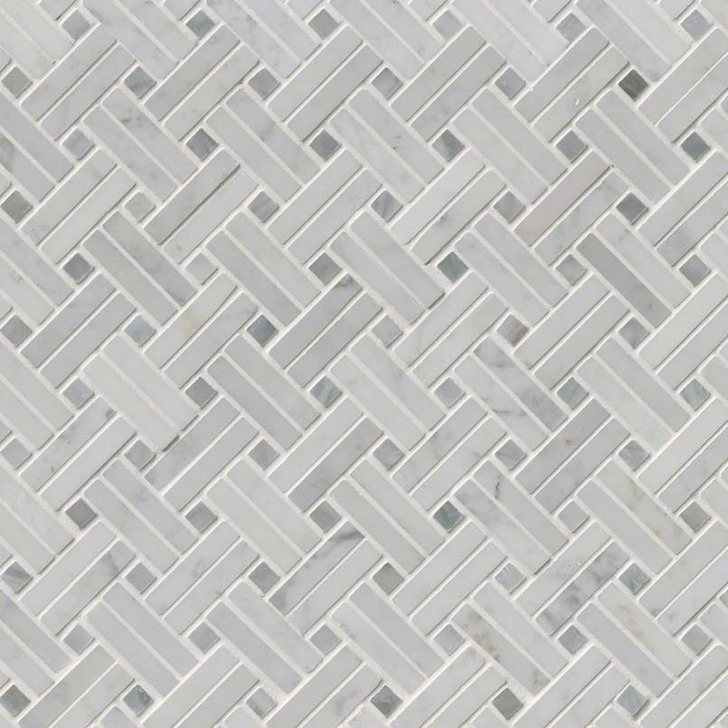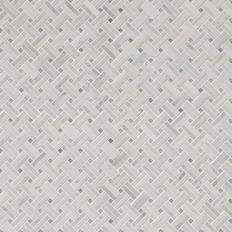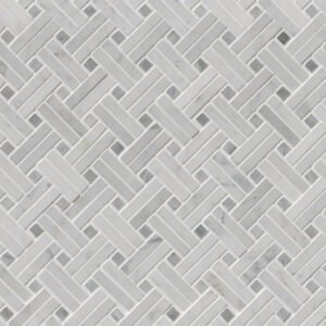 Carrara White Basketweave Tile is a polished Italian marble mosaic that combines frosty white tones with soft gray hues for a look of subtle elegance. The decorative basketweave pattern introduces movement and visual intrigue, while the mesh-mounted sheets provide easy installation. Perfectly suited for backsplashes, countertops, and floors, this timeless tile adds sophistication to both classic and modern spaces.