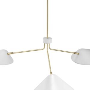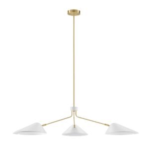 The design integrity of the Journey 3-Light 14″ Arm Pendant assures artful and functional illumination in your dining room, living room, or bedroom. Create kitchen task lighting with the sleek swing-arm powder-coated metal shades. This streamlined triple-light pendant compliments a variety of decors, from mid-century modern to minimalist contemporary. A satin brass ceiling canopy and height-adjustable hanging rods enhance the radiating essence of this elegant pendant light fixture. The Journey Pendant Light is compatible with dimmer switches (not included). Requires 3 E26 bulbs, 40W max or LED equivalent (not included). Professional installation required.