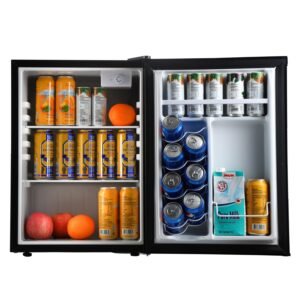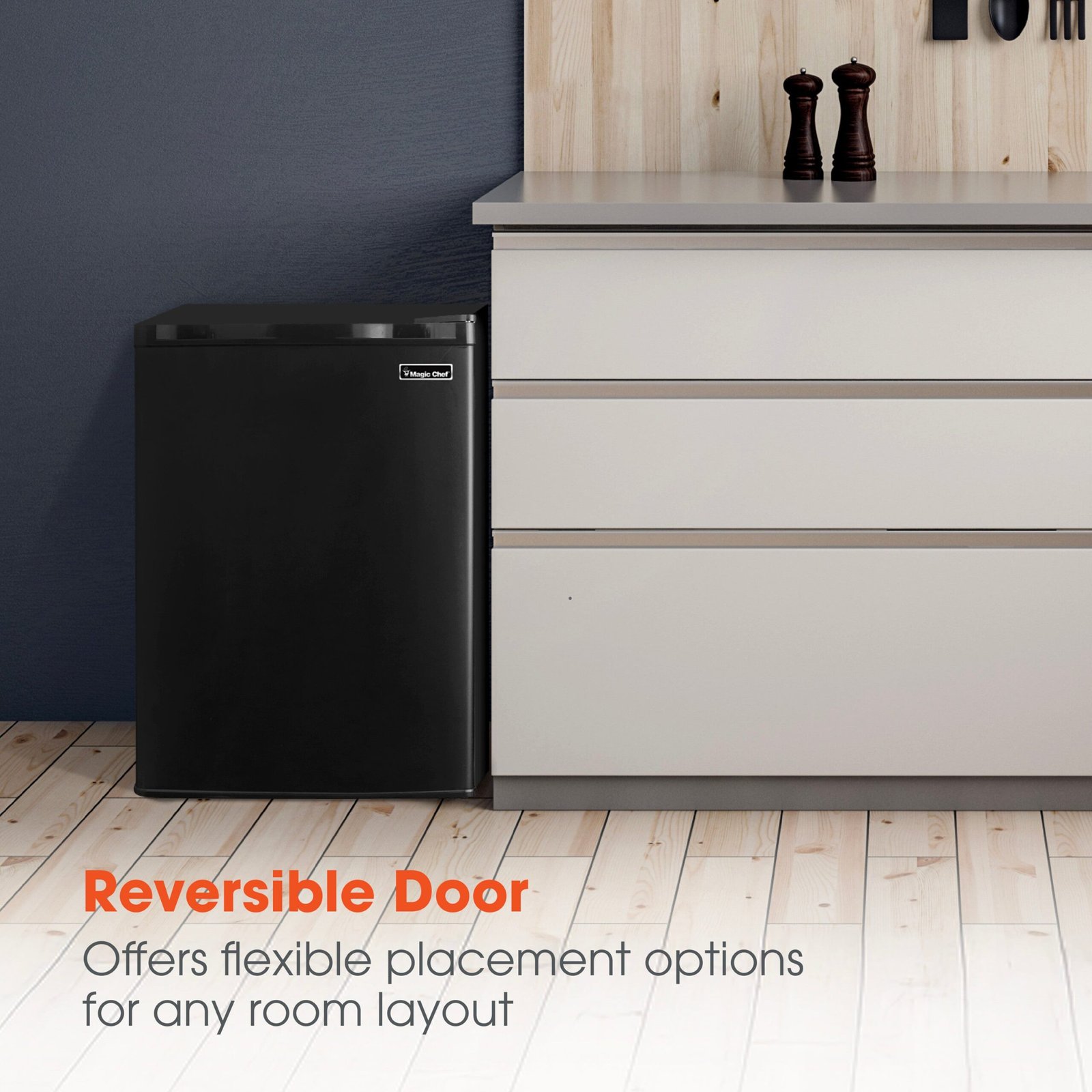 Black The ultimate freezer-less mini fridge — every inch of its 2.6 cu.ft. is dedicated to keeping drinks ice-cold and snacks perfectly fresh. Glass shelves, built-in can dispenser, 2L bottle rack, Energy Star efficiency, and a reversible door make it the #1 choice for dorms, offices, bedrooms, or any small space.