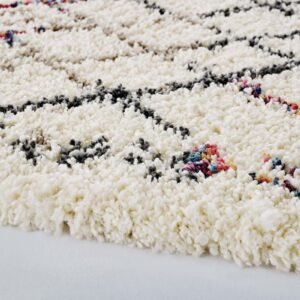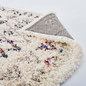 Skadi Rainbow Diamond Shag Area Rug adds a sophisticated touch to any home with its elegant geometric diamond pattern. Crafted from a durable, machine-woven blend of 80% polypropylene and 20% polyester, this non-shedding rug features a soft, high-density shag weave approximately 2 inches thick and a grooved rubber grip bottom for stability. Ideal for living rooms, bedrooms, or family rooms, it enhances both traditional and contemporary decor while withstanding daily use. Stain-resistant and easy to maintain—vacuum regularly and spot clean with diluted soap or detergent—it creates a comfortable, family-friendly play area for kids and pets, protecting floors from spills and heavy furniture.