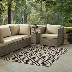 Perplex Geometric Diamond Trellis Indoor and Outdoor Area Rug adds sophisticated charm to both indoor and outdoor spaces with its elegant geometric lattice design. Crafted from durable, machine-woven 100% soft polypropylene, this all-weather rug features a tight low pile weave and a gripping rubber underside for stability. Ideal for high-traffic areas like patios, porches, decks, living rooms, bedrooms, kitchens, or dining rooms, it’s fade- and stain-resistant with easy maintenance—hose down or vacuum periodically. Family-friendly, it creates a contemporary play area for kids and pets while protecting floors from spills and heavy furniture.
