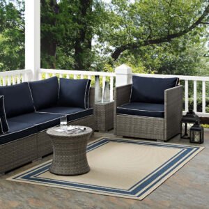 Rim Solid Border Borderline Indoor and Outdoor Area Rug makes a sophisticated statement with its elegant linear design, blending style and durability for indoor and outdoor use. Crafted from durable, machine-woven 100% soft polypropylene, this all-weather rug features a tight low pile weave and a gripping rubber underside for stability. Perfect for high-traffic areas like patios, porches, decks, living rooms, bedrooms, kitchens, or dining rooms, it’s fade- and stain-resistant with easy maintenance—hose down or vacuum periodically. This family-friendly rug protects floors from spills and heavy furniture while providing a contemporary play area for kids and pets, enhancing both traditional and modern decor.